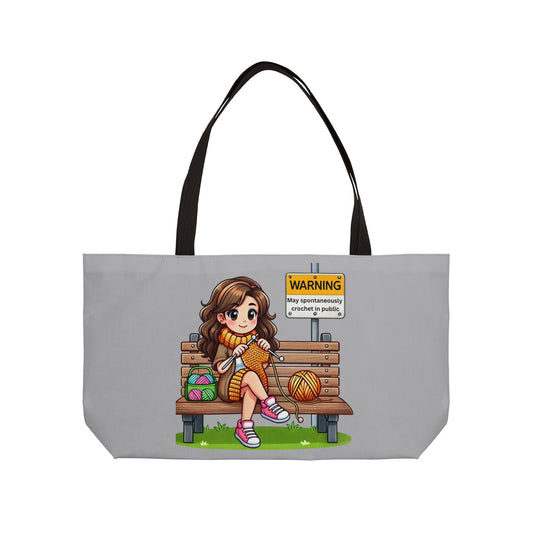 Crafty Crochet Weekender Tote Bag Fun Yarn Lover's Tote, Perfect for Knitting, Crocheting, Crafting, Travel, Gift Ideas, Crochet Lover Bag