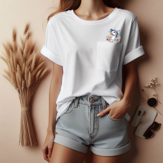 Cottagecore Floral Bonnet Goose Pocket Tee, Nature Lover Mom Pocket Tshirt, Mothers Day Gift Casual Graphic Gift for Friends Everyday Wear