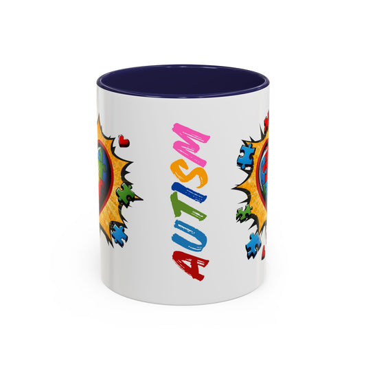 Autism Awareness Mug 11 oz or 15 oz Accent Color Coffee Tea Mug Color Handle Cup, Autism Support Gift, ASD Neurodiversity Inclusion Mug