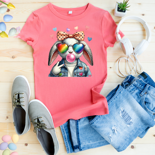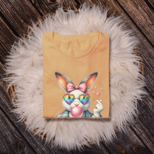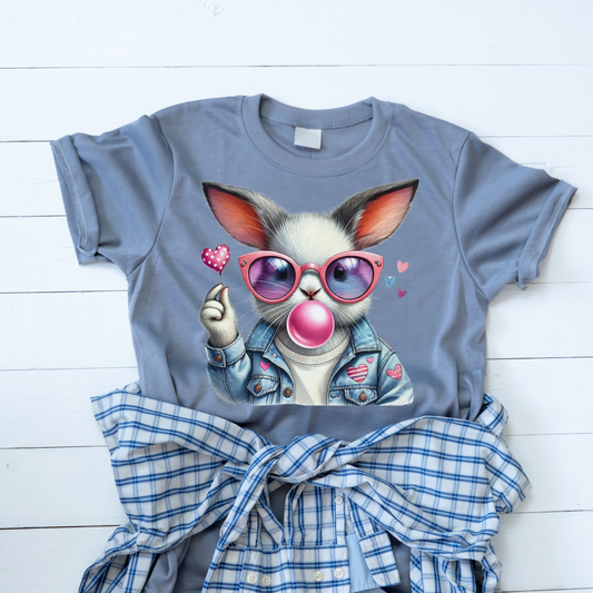 Bubble Gum Bunny Love Graphic Tee, Cute Aesthetic Bunny Rabbit Shirt, Pastel Animal Lover Gift, Unisex Trendy Bunny Shirt Casual Wear